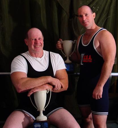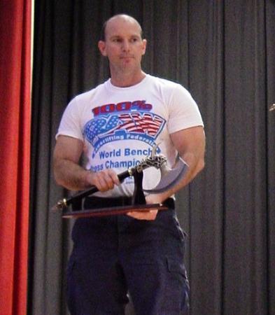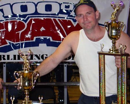 Assorted photos of Gary winning 2 police and fire powerlifting titles at 2005 IronBoy and Raw events in NC and lifting at home gym